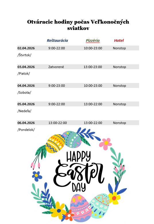 Donáška jedál denne do 21:00.